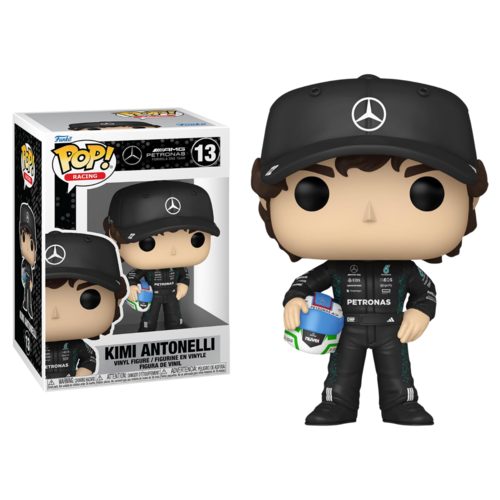 Funko nos trae la colección Racing, dedicada a los apasionados del mundo de las carreras y la Fórmula 1. Este Funko Pop! presenta a Kimi Antonelli con su casco en la mano y una gorra de la marca Mercedes, el piloto estrella de Mercedes Benz, en una representación dinámica que refleja su increíble destreza y éxito en la pista.