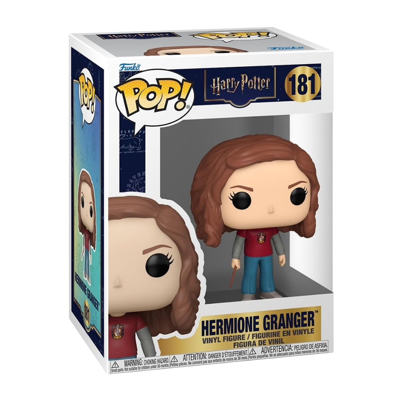 Figura de Vinilo de Hermione Granger Oppugno, Número 181 de la Colección Harry Potter con Referencia 86435, viene dentro de una caja expositora de cartón con ventana transparente. Medida aproximada de la figura: 9 cm. Medida de la caja: 9,0 x 11,5 x 16 cm.