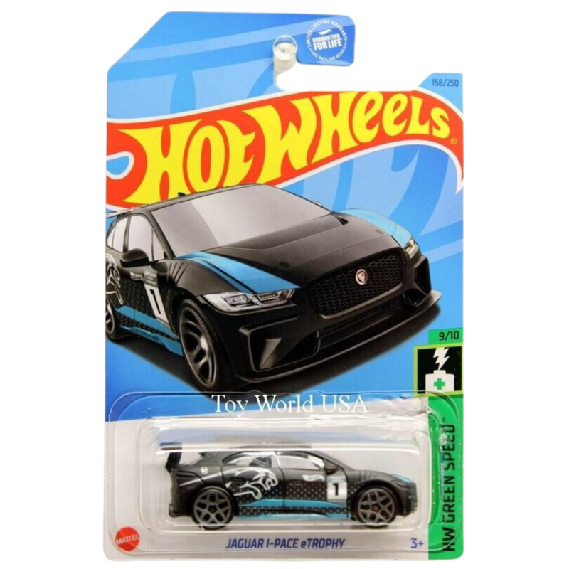 Vehículo de metal tremendamente detallado, en este caso se trata de una fiel réplica a escala del modelo clásico Green Speed - Jaguar I-Pace Etrophy (158/250), con Referencia HW158_ASS28, viene dentro de una caja expositora de cartón con ventana transparente.