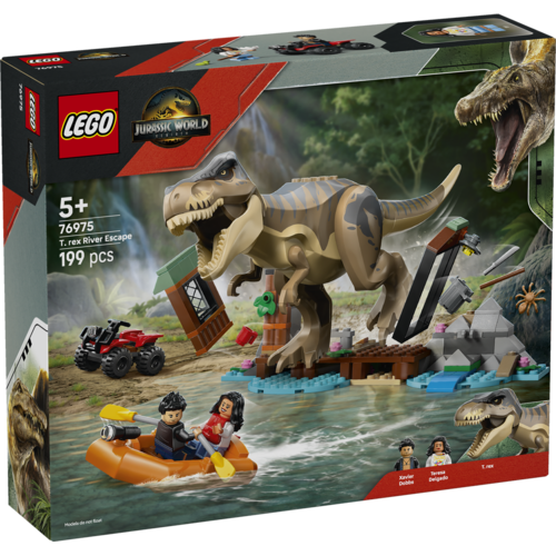 Disfruta la acción jurásica con LEGO Jurassic World Huida por el Río y T. rex a la Caza, un set para niños desde 5 años lleno de aventura y dinosaurios. Incluye un Tyrannosaurus Rex articulado, minifiguras, bote, quad y estructuras con función de destrucción para recrear escenas épicas. Perfecto como regalo para fans de Jurassic World y juegos de construcción. Compatible con otros sets LEGO y con instrucciones digitales en LEGO Builder para una experiencia divertida, creativa y emocionante.