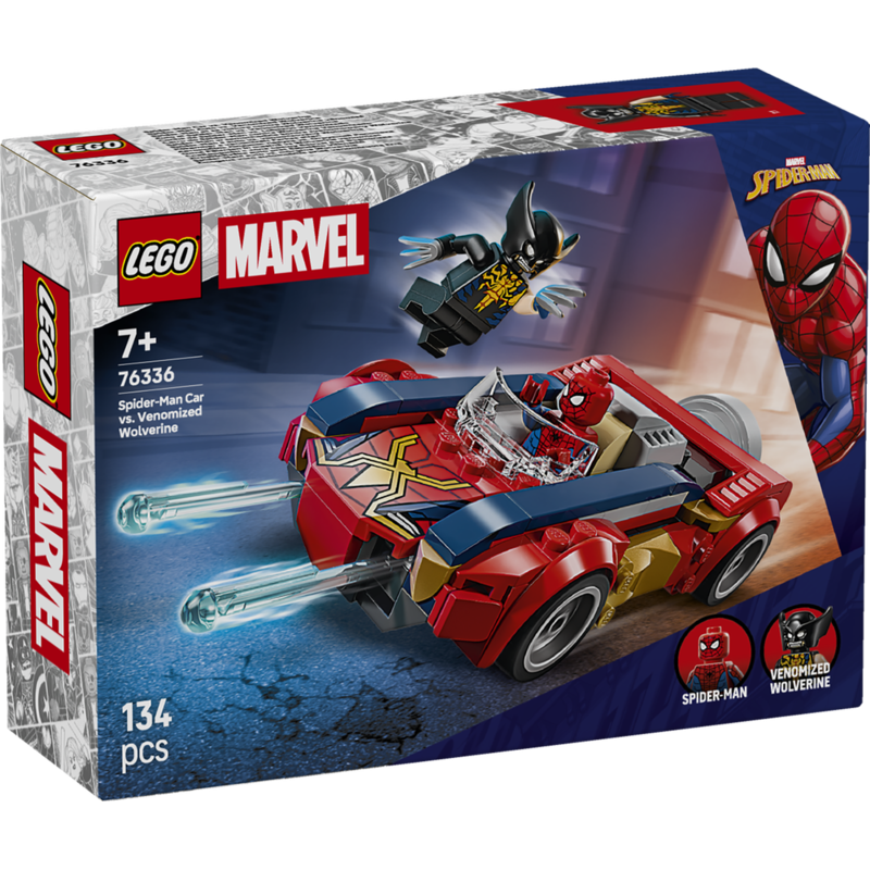 Disfruta del set Coche de Spider-Man vs. Lobezno Venomizado, donde podrás recrear persecuciones llenas de adrenalina con un vehículo preparado para misiones de superhéroes. Incluye minifiguras, accesorios temáticos y elementos que permiten desarrollar combates, rescates y escenas cargadas de acción, ideal para fans del universo arácnido, coleccionistas y amantes de los juguetes de construcción.