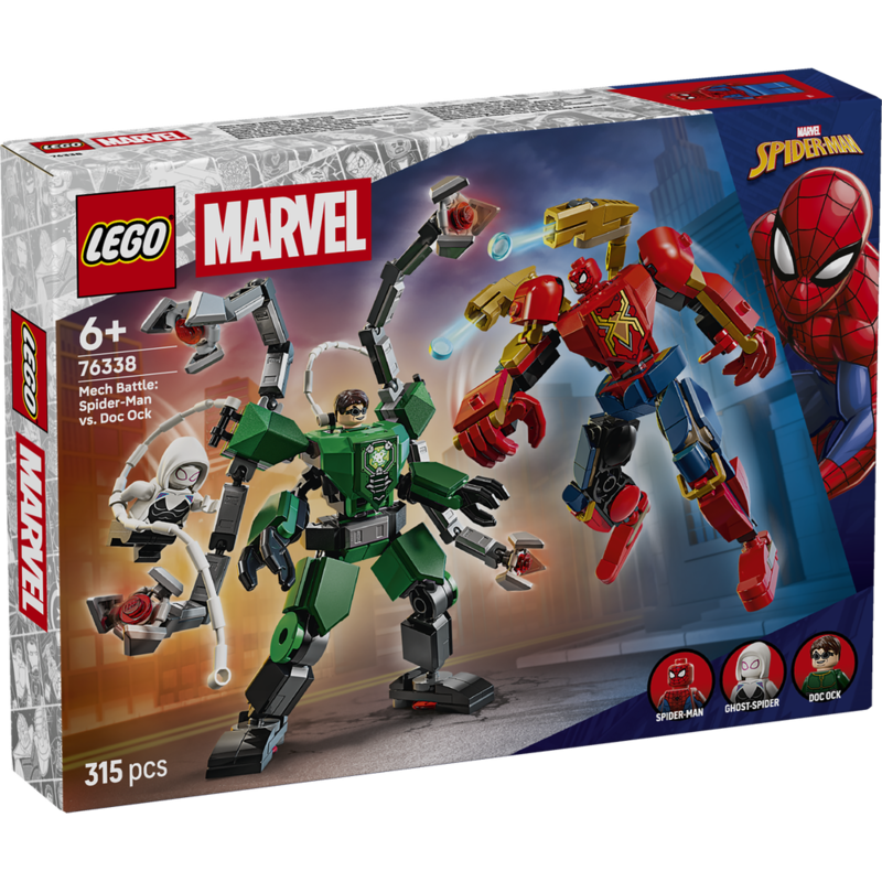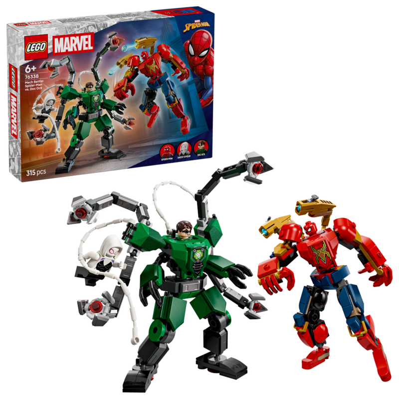 Vive el combate entre Spider-Man y el Doctor Octopus con impresionantes armaduras robóticas articuladas diseñadas para combates llenos de movimiento. El set incluye minifiguras, accesorios de batalla y estructuras que permiten recrear persecuciones, ataques mecánicos y escenas de acción, ideal para fans de Marvel, coleccionistas y amantes de los juguetes de construcción.