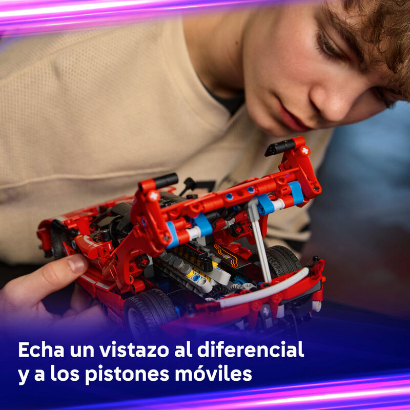 Construye el impresionante Ferrari FXX K, una maqueta cargada de detalles fieles al superdeportivo original. Incorpora puertas de mariposa, capó abatible y cubierta del motor que se abre para revelar un potente motor V12 con pistones móviles y diferencial funcional. Su emblemático color rojo lo convierte en una espectacular pieza de exposición, perfecta para fans de los supercoches y jóvenes constructores que desean iniciarse en conceptos STEM mientras disfrutan del montaje.