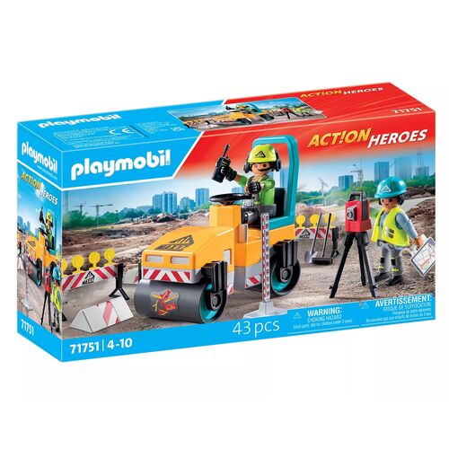 Este set de Playmobil pertenece a la colección Action Heroes. Involúcrate en proyectos urbanos dinámicos: repara carreteras, dirige el tráfico con conos y señales, opera maquinaria pesada y colabora con tu equipo para mantener la ciudad en marcha. ¡Cada reto de construcción es una aventura!