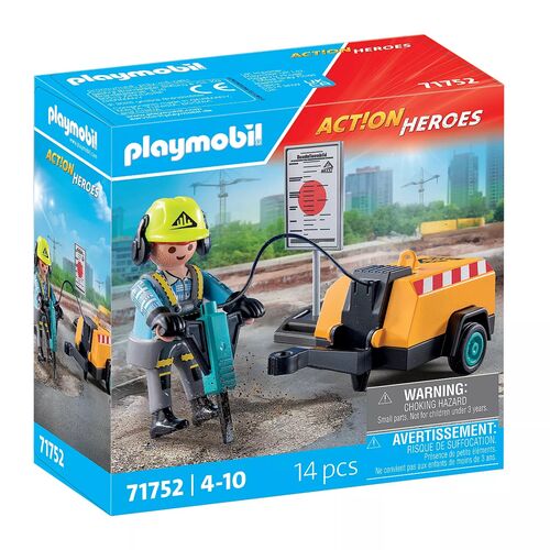 Este set de Playmobil pertenece a la colección Action Heroes. Únete al bullicio del desarrollo urbano: repara calles, opera maquinaria y colabora con tu equipo para mantener la ciudad en marcha. ¡Cada pequeño esfuerzo cuenta en los grandes proyectos!