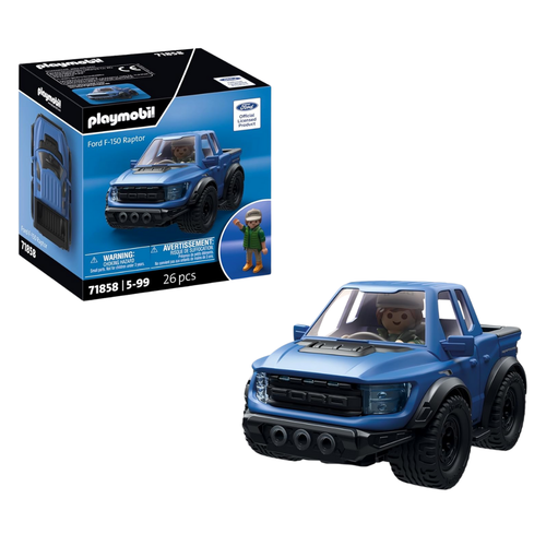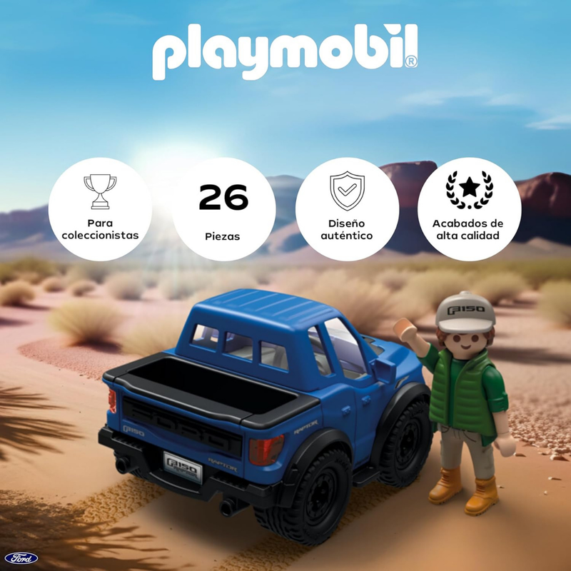 Playmobil nos trae el clásico Ford F-150 Raptor, se trata de una impresionante réplica del potente pick-up americano, reconocida por su robustez y estilo deportivo. Su diseño destaca por las líneas agresivas, la parrilla distintiva y la imponente presencia que reflejan el espíritu todoterreno de Ford. Con una cuidada atención al detalle, este modelo captura la esencia de la conducción extrema y la fuerza del vehículo original. Es una pieza ideal para coleccionistas que valoran el diseño, la potencia y la autenticidad automotriz.