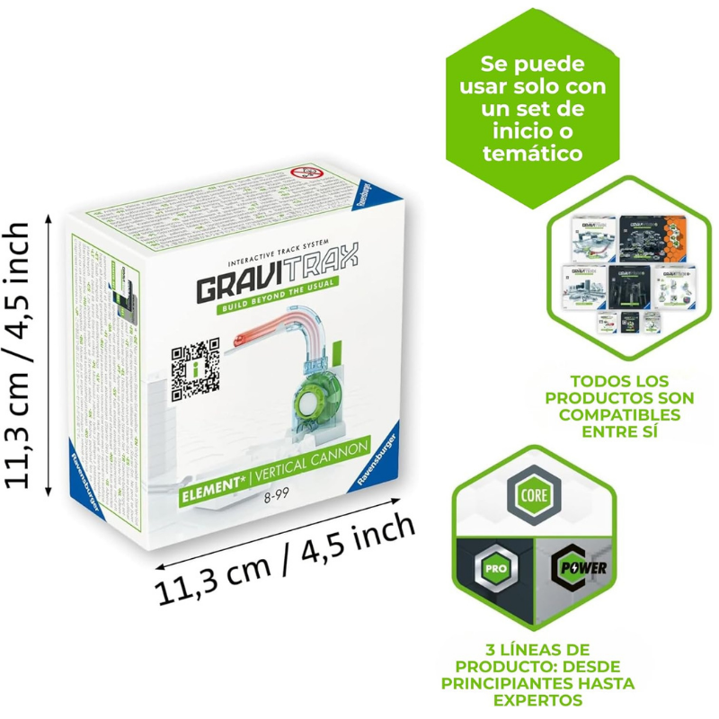 Power Element Vertical Canon, con Referencia 27465. El juego educativo de GraviTrax permite que los niños puedan desarrollar la creatividad y la imaginación con los conceptos de la gravedad y magnetismo de sus circuitos.