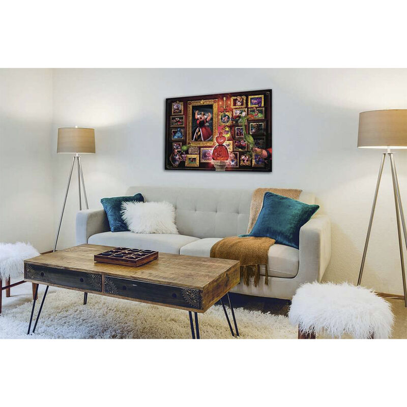 Ravensburger nos trae la colección de puzzles de Villanos Disney. Puzzle de la Reina de Corazones con la Referencia 00038, basado en la colección de los mayores villanos, malhechores, infames y despreciables personajes sobre la faz del universo Disney: Scar, Maléfica, Cruella, la Reina Malvada, Capitán Garfio y otros muchos personajes.